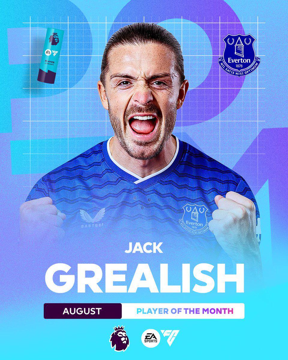 3场4助领跑助攻榜,格拉利什当选英超8月最佳球员